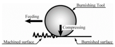 バニシング加工 ( Burnishing ) とは、機械加工された粗い面を持つ工作物に対し、高硬度材でできた円筒あるいは半球形状などの工具を押し付け、押しならすことで滑らかな仕上げ面を得る加工法です。これは、工作物表面の微小な塑性変形を利用した仕上げ加工法であり、バニシング効果自体は古くから知られています。