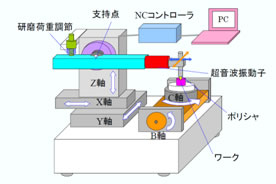 図2 同時4軸制御の超音波2軸振動援用研磨装置の概略図