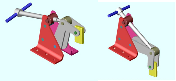 市販の3D-CADはソリッドモデルで3次元形状を表現し、アセンブリファイル、パーツファイル、図面ファイルが互いに関連性を維持している。図1に示すクランプのアセンブリは、図2に示す11個のパーツで構成されている。アセンブリファイルには、アセンブリ空間におけるパーツの位置と姿勢、およびパーツ組立に関する拘束のみが定義され、形状に関するデータはパーツファイルを参照している。したがって、パーツのファイル名を変更したり、保存先を変更したりしてしまうとアセンブリファイルを開いたときにパーツファイルを見つけることができなくなる。そのため、複数の設計者によるプロジェクトでは、PDM ( Product Data Management ) のようなファイル管理が必要になる。